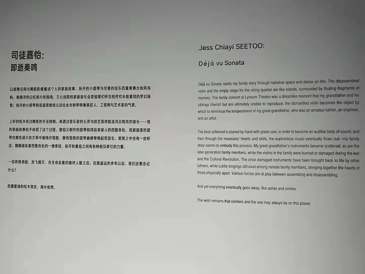 Déjà vu Sonata is a dance film and narrative space based on the reencounter with my remote family stories, a family of violinists in Shanghai in the 1930s-1940s.